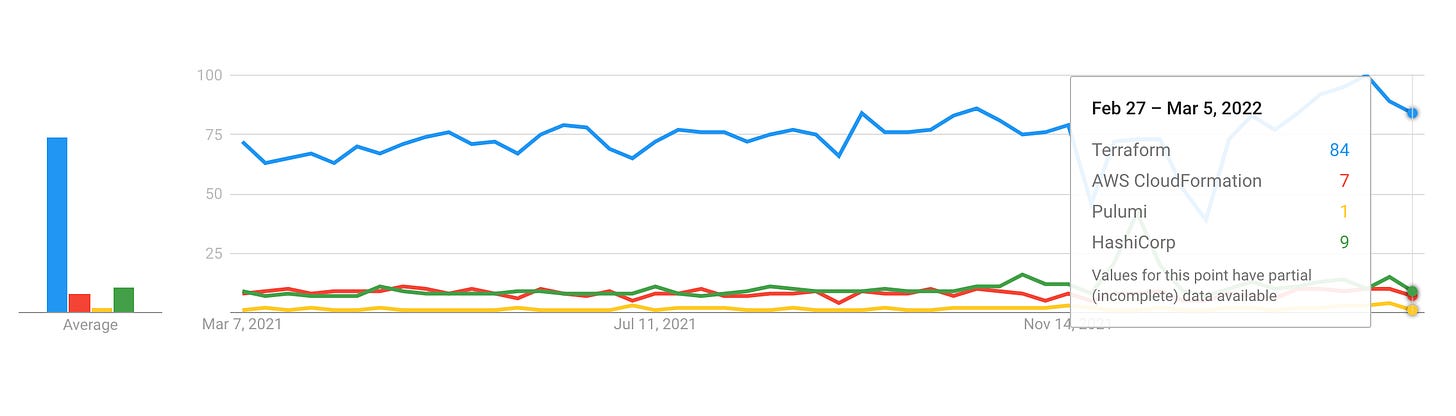 When comparing SEO performance for IaC market Terraform the clear leader.