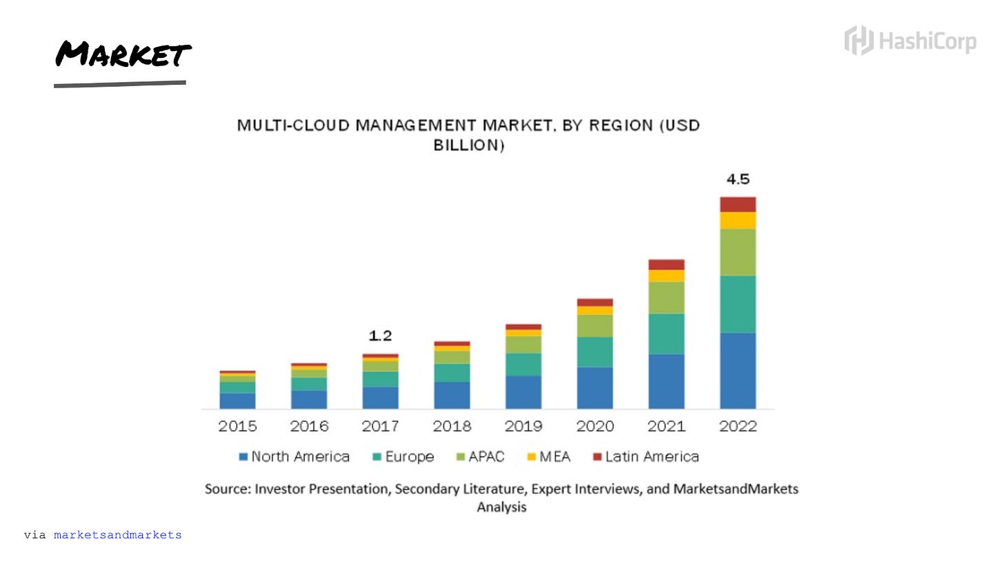 As remote work and mobile computing become the standard, access to unlimited computing power, and storage is becoming expected. This emerging market is huge, and just beginning to take shape as new challenges like Multi-Cloud infrastructure management present themselves. HashiCorp has already found its product market fit in this growing problem space, and now finds itself facing internal growing pains; new fresher competitors, and copy cats.