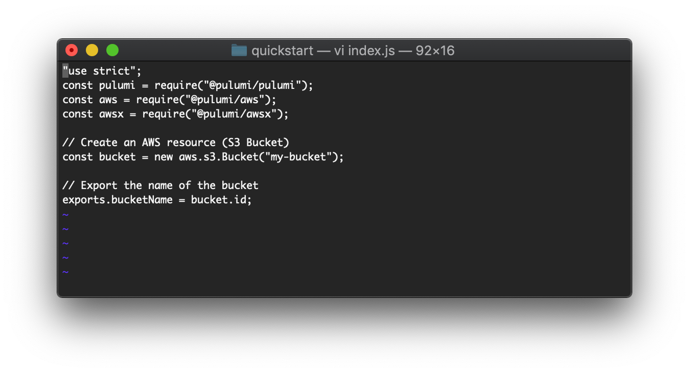 As a developer I wanted to get a feel for each technology and decide which I would personally prefer. First I followed the Pulumi “Getting Started” guide for my language of choice Javascript with my AWS account, and on my MacBook. Getting started with Pulumi felt very natural as a developer, I didn’t need to configure anything for AWS because it uses environment variables which I already had set up for other projects. Installing Pulumi was straight forward using Homebrew. Then editing the code to create a new AWS S3 bucket felt comfortable. Then running the code to provision my new bucket was as simple as “pulumi apply”. All in all it took about ten minutes.