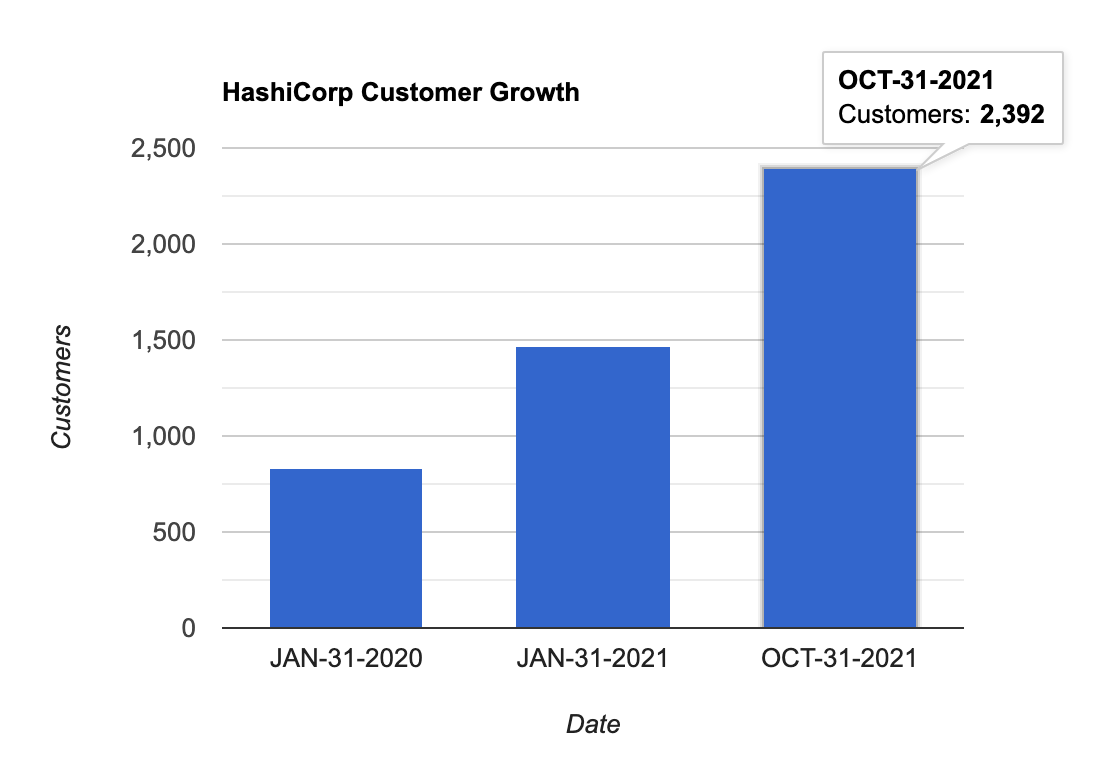According to market size based on this report and reported sales, HashiCorp accounted for 3.6% of the market in 2020, and 5.1% of the market in 2021.